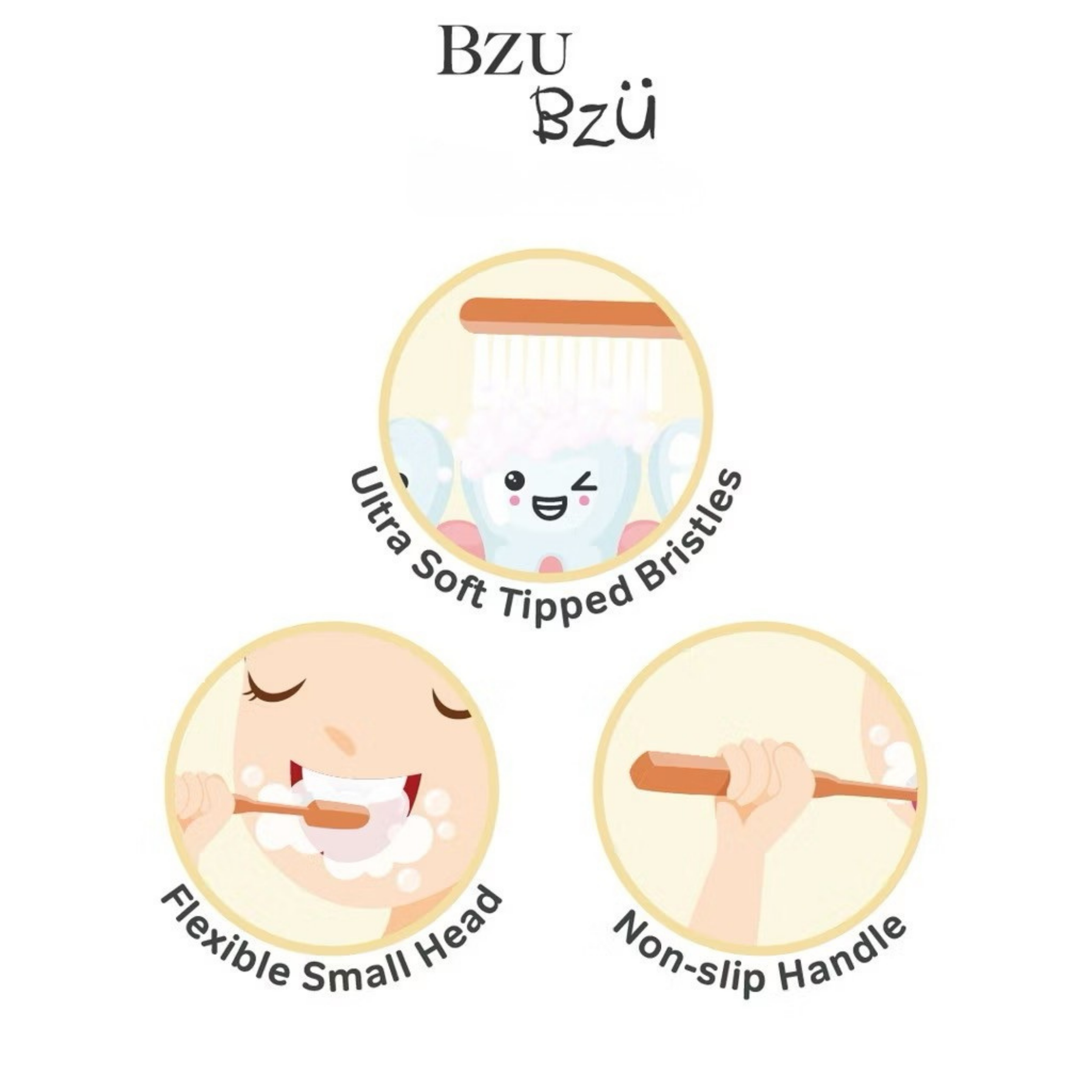 BzuBzu Kids Toothpaste Grape Bundle offers superior gum protection with a blend of vitamin C and E. It's sugar-free and anti cavity, so your child's dental health is safe and sound. Plus, this value pack contains two tubes and a free ultra soft bristle toothbrush, so your kids' teeth stay clean and healthy. Try it today!