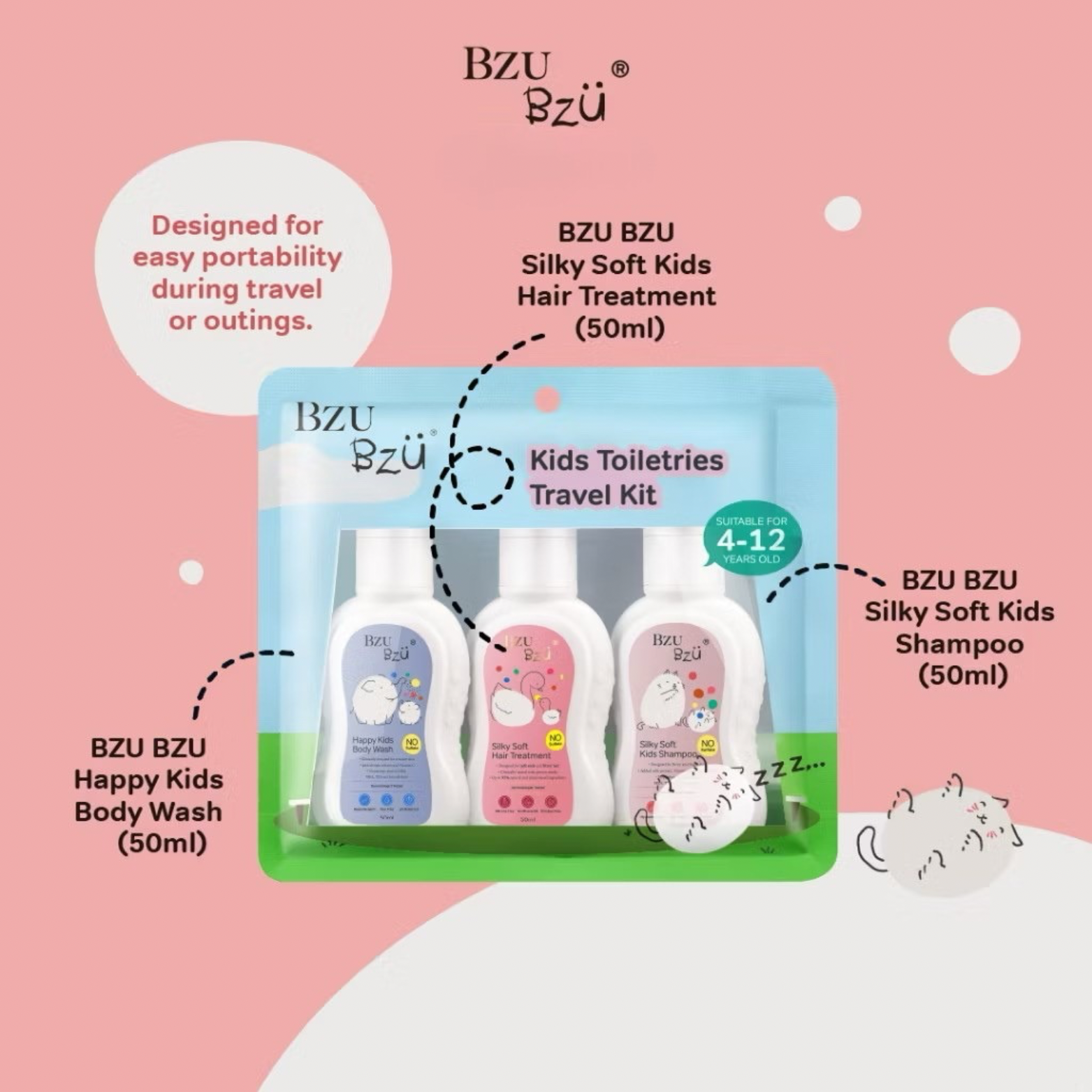 Stay clean and refreshed on the go with this BzuBzu Kids Travel Kit. It includes shampoo, hair treatment and body wash - all in easy-to-carry and TSA-approved containers. The perfect way to keep your kids looking and feeling their best wherever they go!
