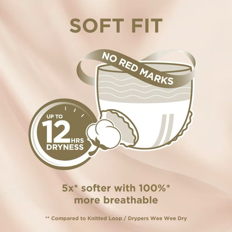 Easy to pull on and tear off at the sides, these pants make quick changes simple at home or on the go. A slim, contoured design fits discreetly under clothing without bulk, and a wetness indicator helps you know when it’s time for a change. Dermatologically tested and gentle on skin, they’re ideal for everyday use, nap time, and overnight protection.