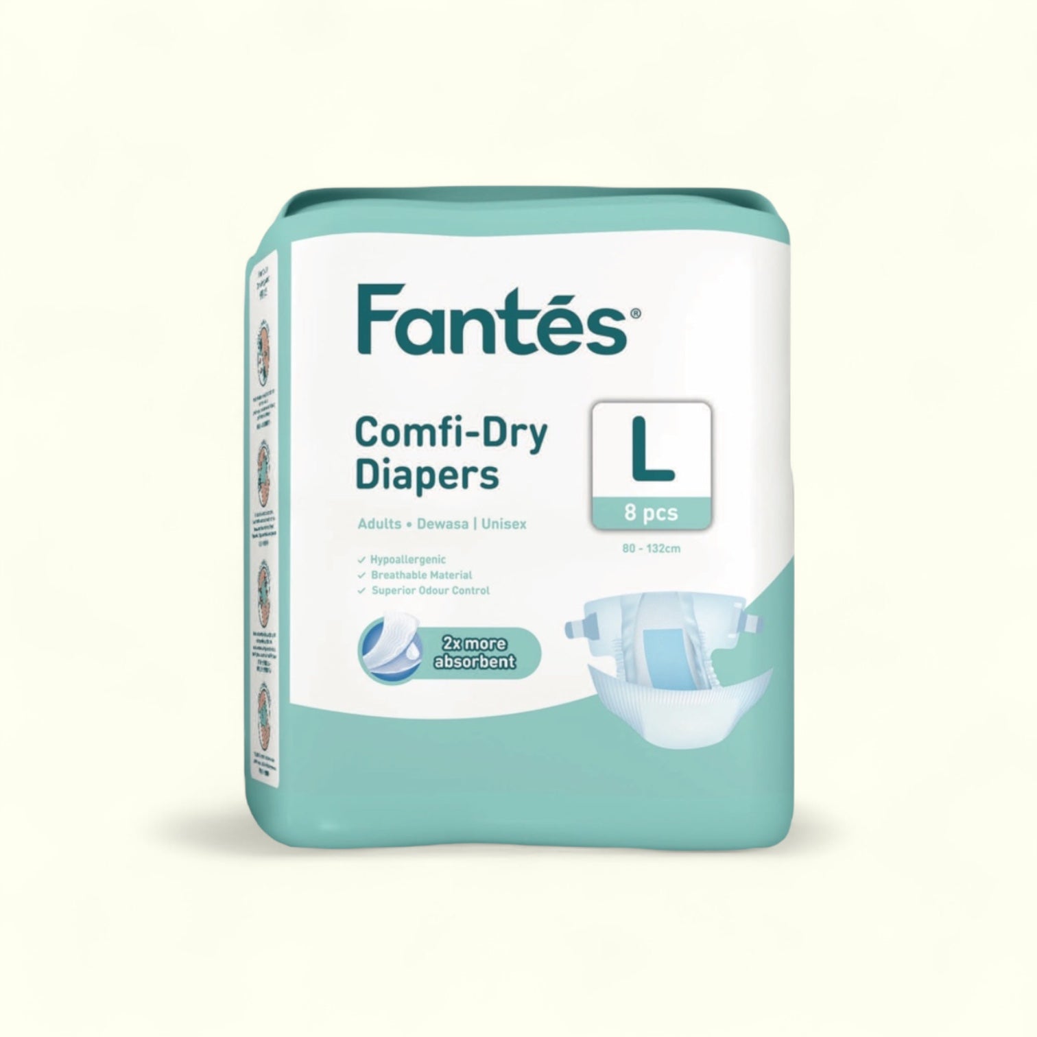 Empower yourself or your family with Fantes Adult Diapers. Made with a hypoallergenic and highly breathable material, these pants provide superior odor control to keep you feeling fresh and comfortable. With a super absorbent core and leakage barrier protection, you can trust these diapers to keep you dry and confident. The refastenable tape and wetness indicator add convenience, while the acquisition distribution layer technology ensures even distribution of fluid for maximum absorption.