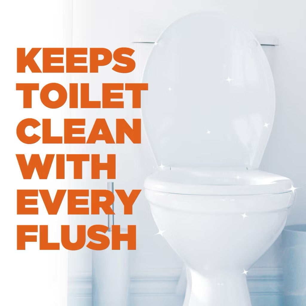 It contains active detergent which leaves your toilet bowl sparklingly clean. With every flush, it not only cleans right through but also leaves behind a fresh fragrance.