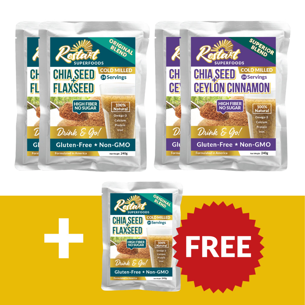 The results are AMAZING. The omega-3 oils and nutrients stay much FRESHER and it is much EASIER for your body to absorb! Restart is a propriety blend of the highest grade chia seeds and flaxseed COLD-MILLED to perfection.