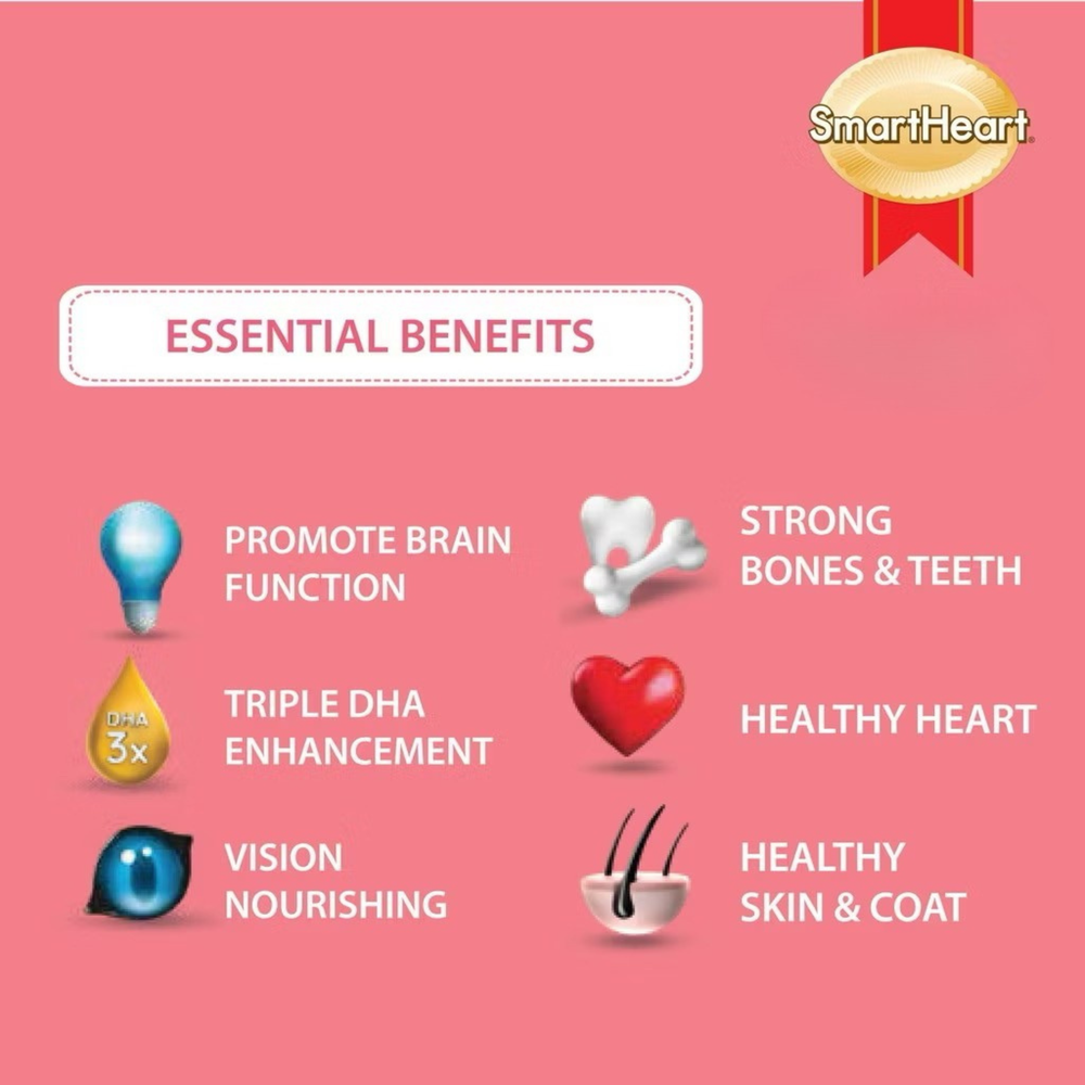 Smart Heart contains triple DHA enhancement for brain development, promotes healthy heart, vision nourishing, healthy skin and coat. Supplemented with fish oil and lecithin.